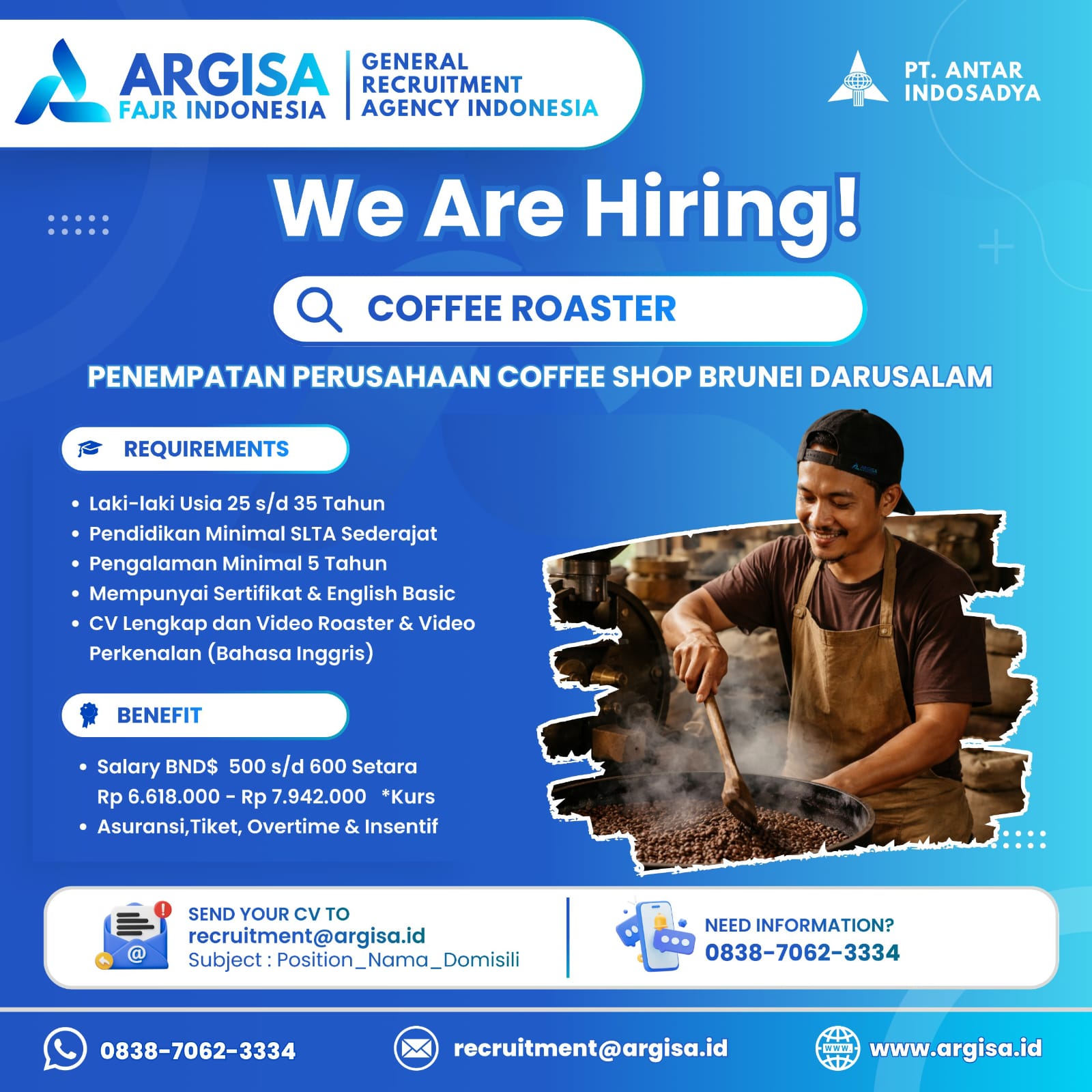 - Pengalaman minimal 1-2 tahun sebagai Coffee Roaster atau di industri kopi.